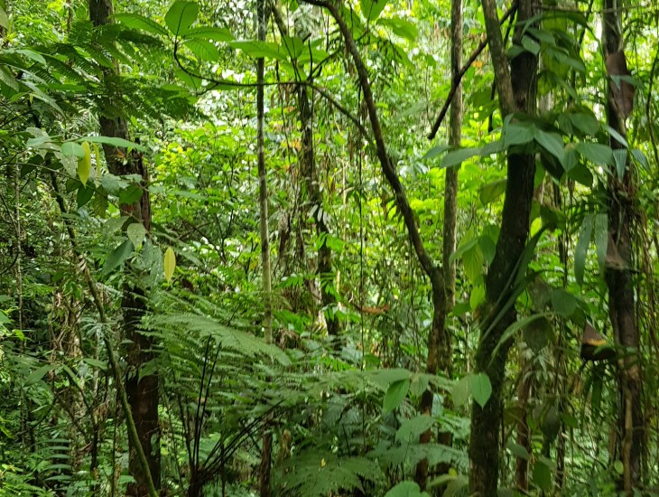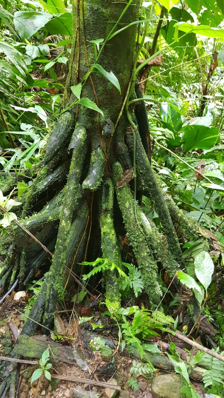 The rainforest is unlike anything we have experienced. The growth is supercharged, as if a mad scientist had concocted the perfect growing conditions with year-round heat and rain. Trees grow upon and within trees, climbing over each other to reach the sunlight; seeds left on tree branches by birds germinate through sheer excitement and their roots can grow 15 metres in thin air down to the ground just to find water. It seems like most parts of the food chain have enough to eat.