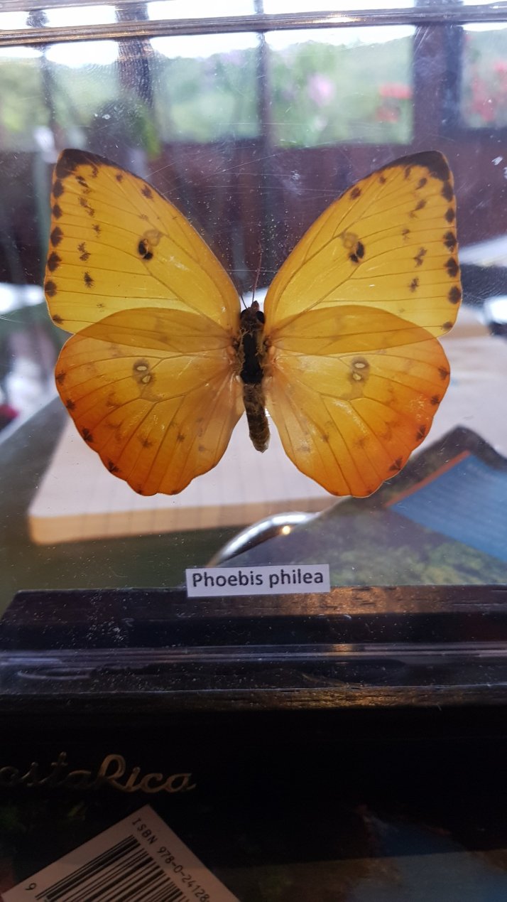We had a lovely lunch – we had the best lunch ever. I had rice, but I did not like the peppers. I am fussy, but not as fussy as Dad. Lola had a hummus sandwich, but without the black olives (Lola does not like olives). Dad and Mum had the Costa Rican special, rice and beans, (Gallo Tinto) and then we drove to the Butterfly Garden. We saw so many butterflies. My favourite was a Sulphur butterfly and in latin it is called Phoebis Philea. Lola wanted to take a picture of a soldier army ant so the guide held it and received a painful sting. OW!