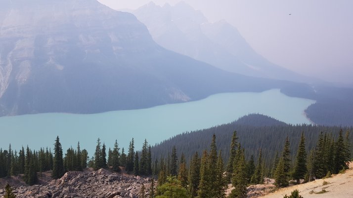 We had got used to it – to a point. We spent 2 days in Jasper without ever seeing the mountains that surround it. We went to Emerald Lake and only saw the lake. We were reading about the health issues of the smoke and it was only on Sunday that is started to affect us – it feels like you cannot get a full breath and walking uphill is a challenge. It is unnerving and takes some time to get use to it.